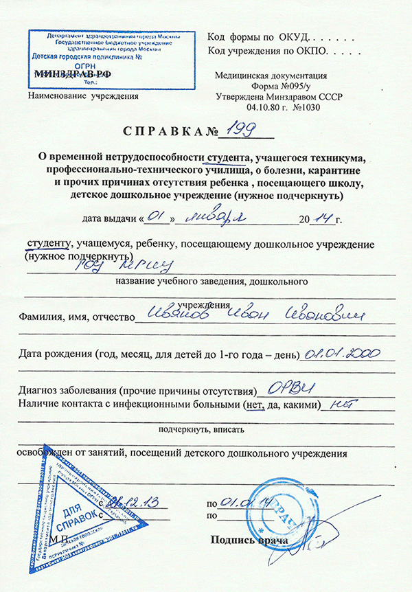 Справка о болезни 095у студентам и учащимся