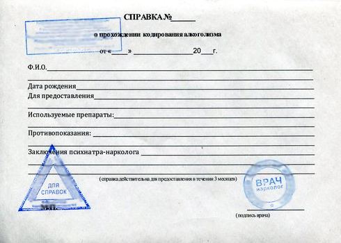 Купить справку о кодировании